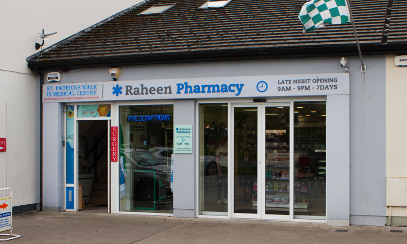 Here at Raheen Pharmacy, we are open 9am – 9pm seven days a week, including bank holidays. Your good health is our ultimate goal. Our aim is to provide a complete care service to the entire community, and beyond. At Raheen Pharmacy we listen, understand and most importantly care about each of our customers. We offer an optimum pharmacy healthcare and customer service, with reliable advice always available from our experienced pharmacists and other highly trained staff.